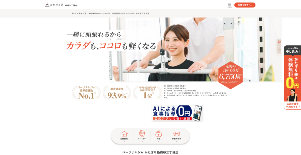 「健康維持の為に仕事帰り、四谷三丁目でパーソナルトレーニング長く続けられるところはどこ?」